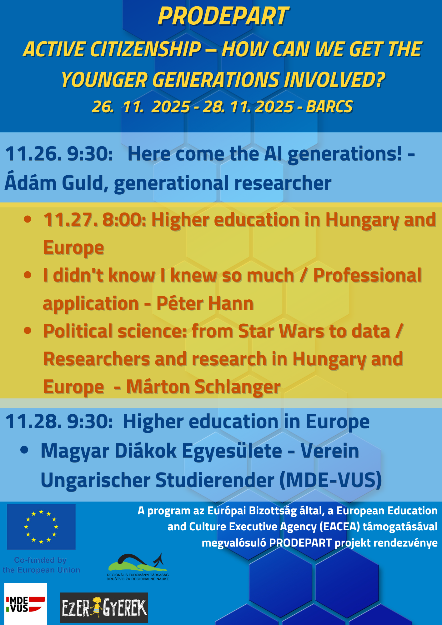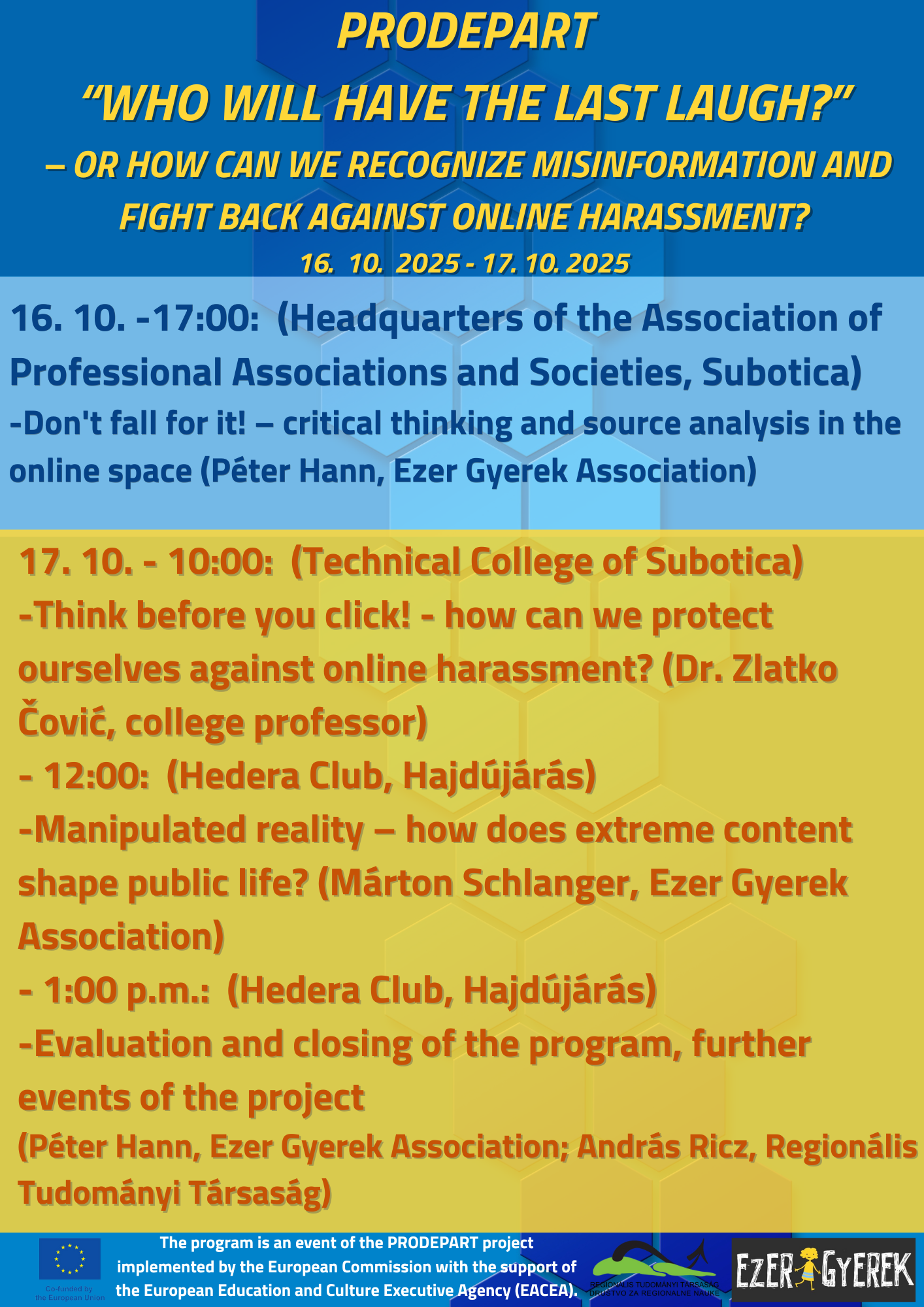 A programot az Európai Bizottság Oktatási, Audiovizuális és Kulturális Végrehajtó Ügynöksége (EACEA) támogatta az „Európa a polgárokért – Városok hálózatai” intézkedés keretében.